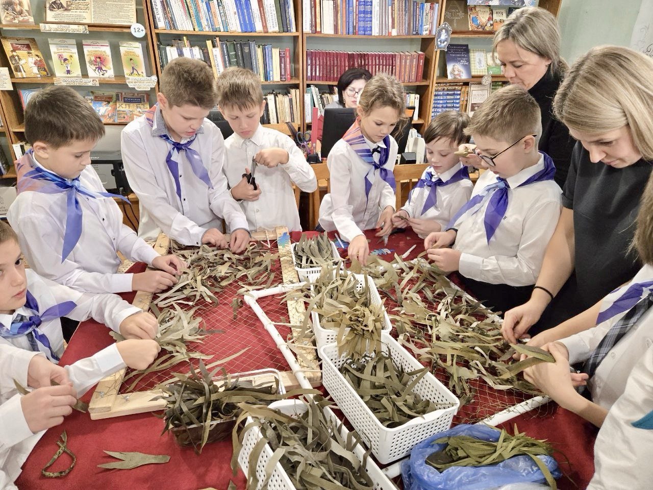 В рамках мероприятия состоялся мастер-класс. Ребята вместе с добровольцами плели маскировочные шапочки «кочки», которые передадут нашим военнослужащим. Юные читатели также подготовили письма-поздравления для бойцов с Днем Героев Отечества.