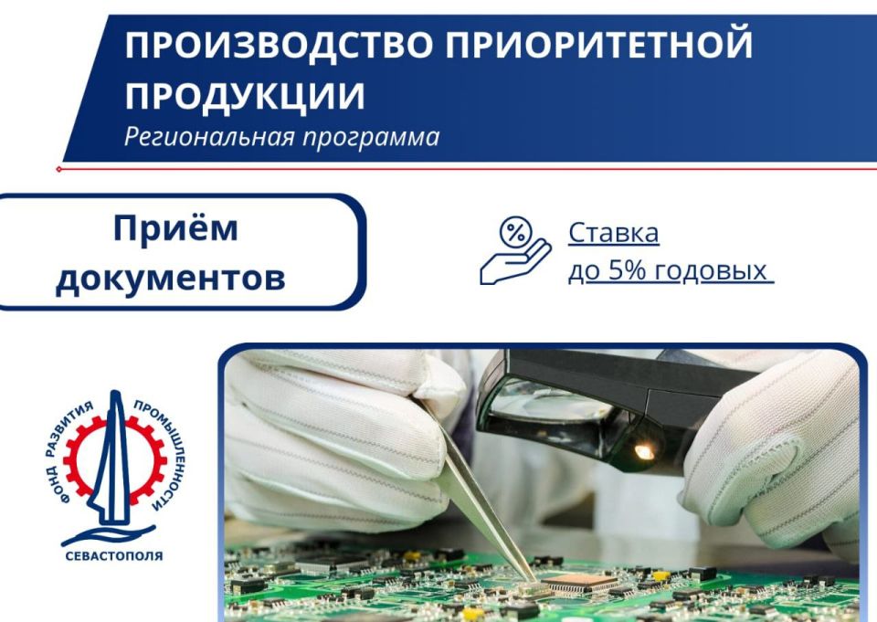 Фонд развития промышленности Севастополя принимает заявки на льготное финансирование в рамках программы «Производство приоритетной продукции».Программа направлена на поддержку проектов по выпуску продукции, включенной в...