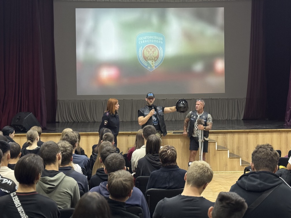 Госавтоинспекторы совместно с представителями мотосообщества провели для студентов Севастопольского многопрофильного колледжа им. Маршала инженерных войск А.В. Геловани специальное занятие, направленное на профилактику ДТП среди молодых автолюбителей, мотоциклистов и тех, кто еще не имеет права управления транспортными средствами.