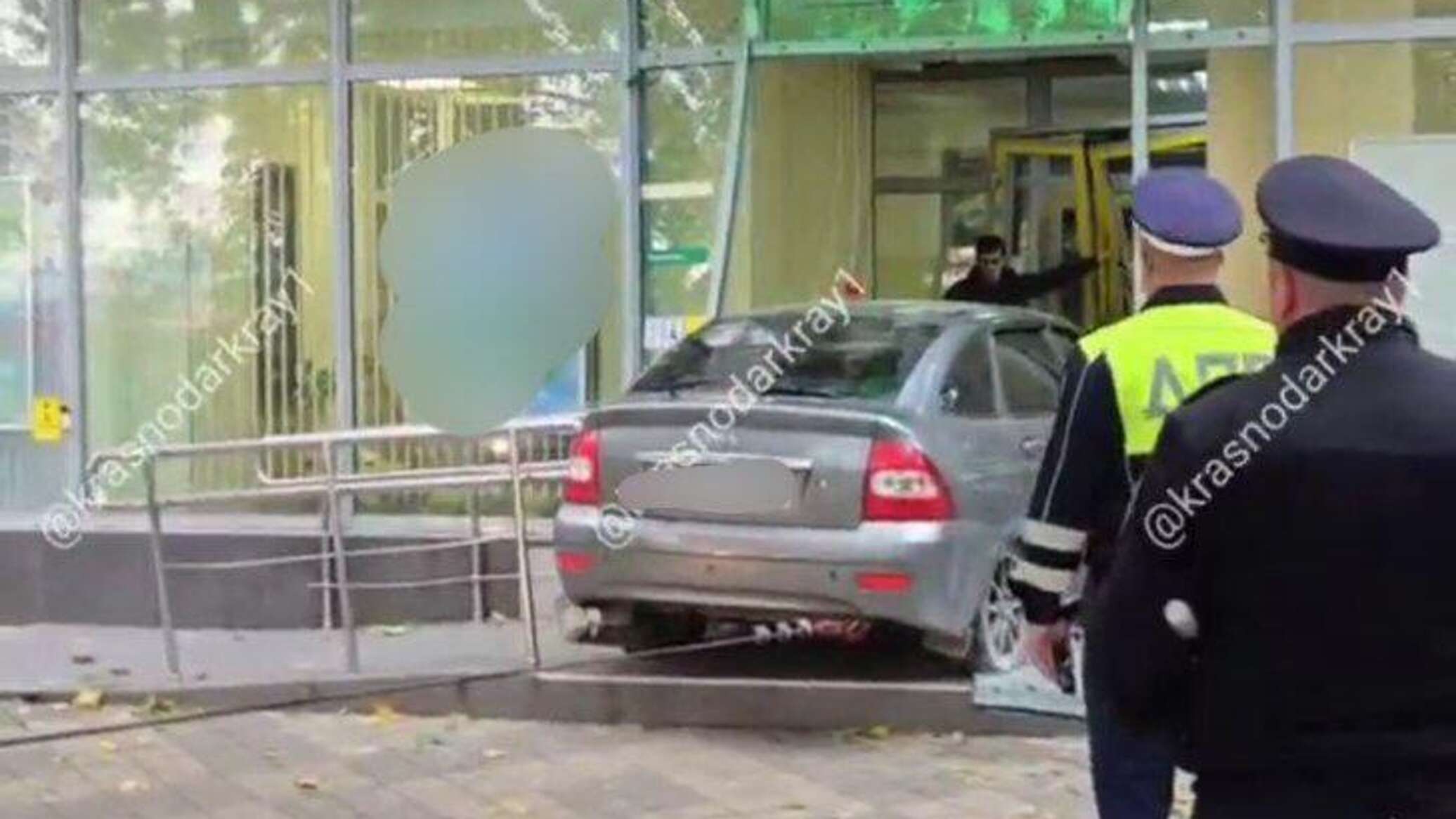 "Водитель автомобиля Lada Priora въехал в отделение банка в Краснодаре", – сказано в сообщении.