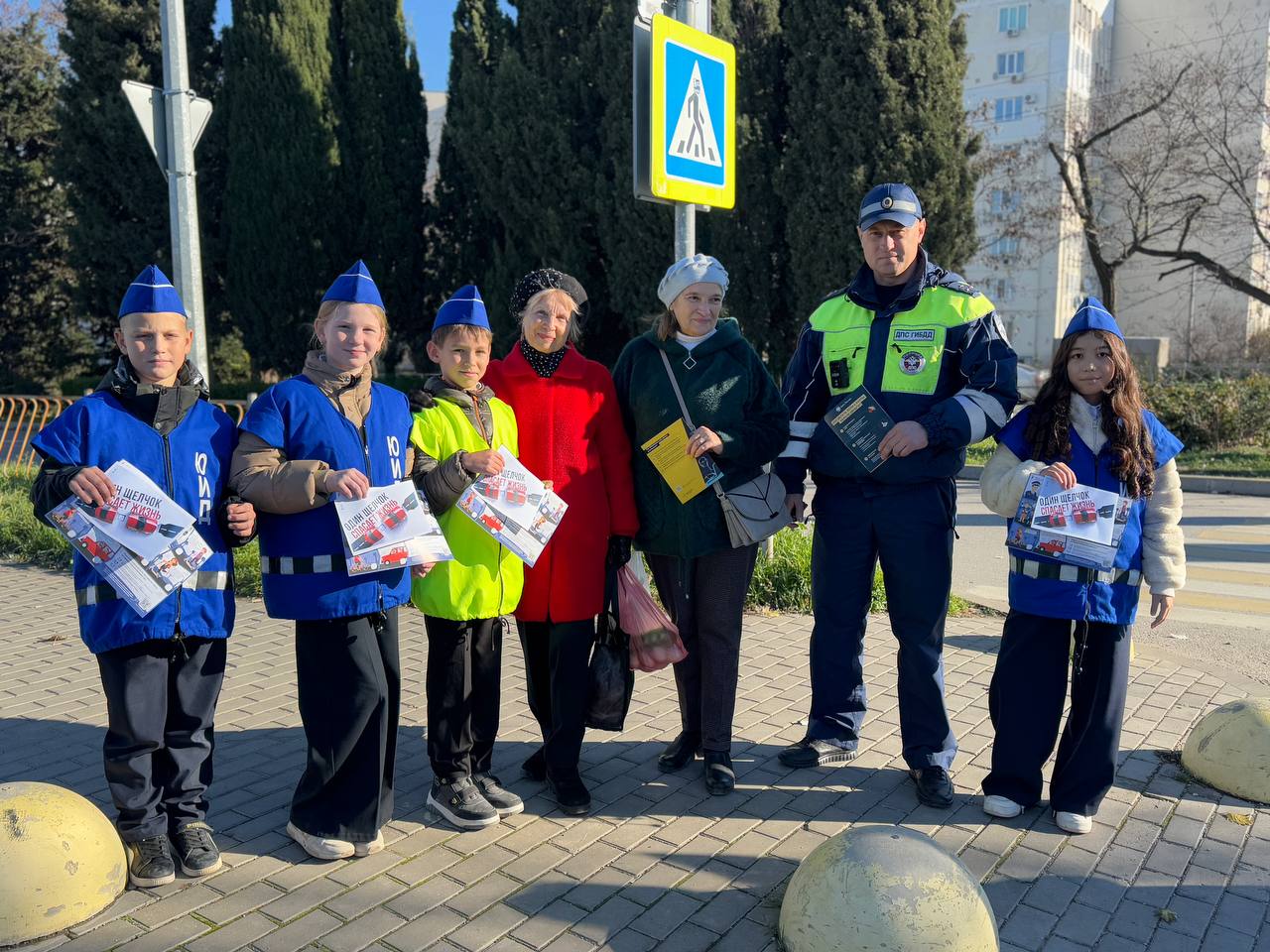 В завершении мероприятия правоохранители и дети вручили пешеходам яркие листовки по ПДД.