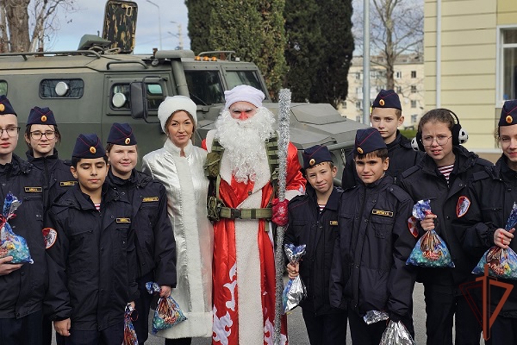 В Севастополе представители ведомства в костюмах Деда Мороза и Снегурочки на бронированном автомобиле «Тигр» поздравили учеников подшефных классов гимназии №10, пожелали им хорошей успеваемости, а также исполнения всех желаний в наступающем году.