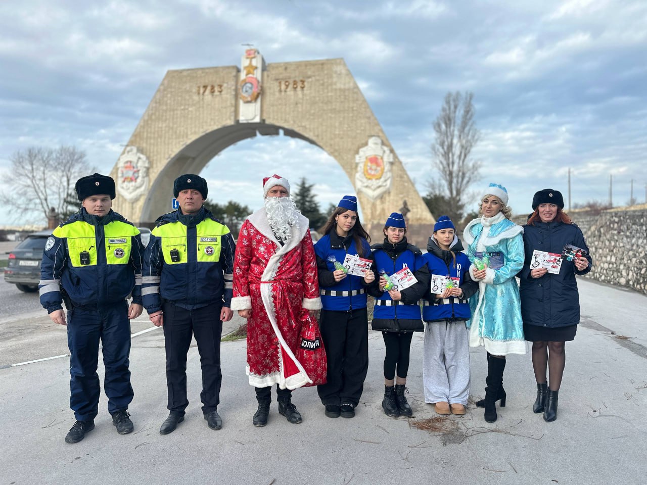 В преддверии Рождества на улицах Севастополя появился необычный «Новогодний патруль». Совместную профилактическую акцию «Авто Дед Мороз» для участников дорожного движения провели сотрудники Госавтоинспекции, отряд юных инспекторов движения, а также главные сказочные герои зимы — Дед Мороз и Снегурочка.