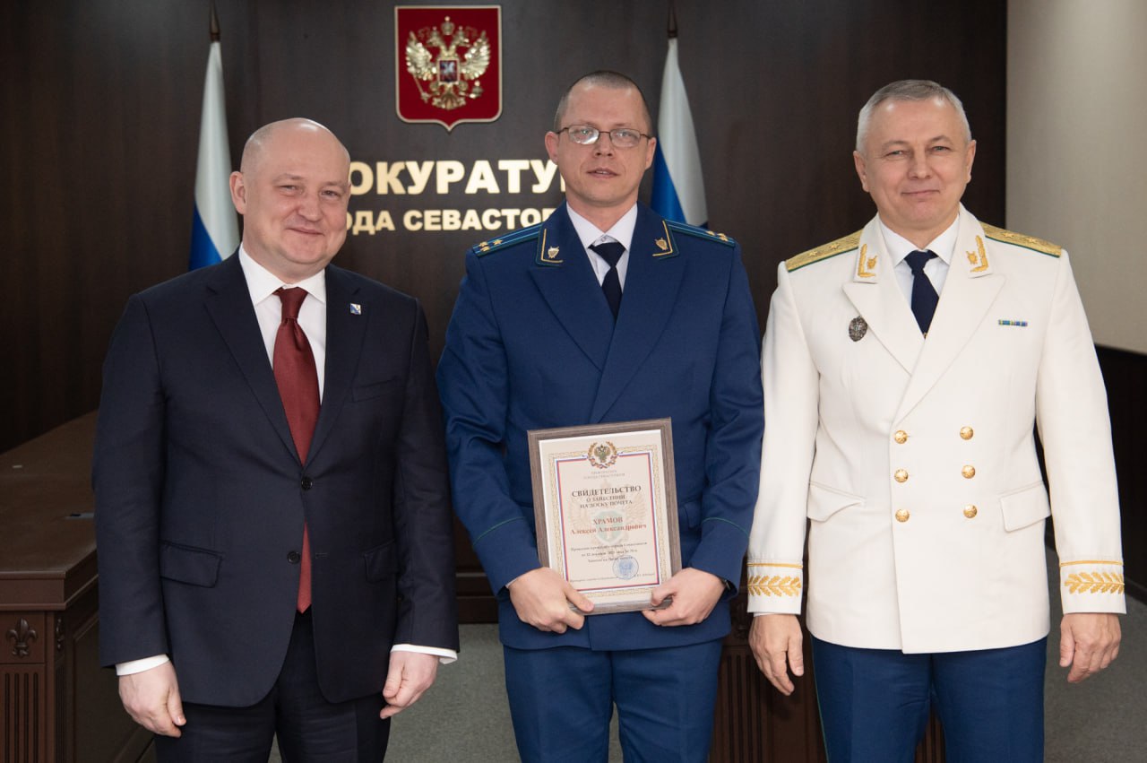 Генеральным прокурором Российской Федерации поощрены 9 работников. Медалью «Ветеран прокуратуры» награждены пенсионеры прокуратуры Юрий Писанко и Наталья Щербаченко. Нагрудным знаком «За безупречную службу в прокуратуре Российской Федерации» отмечена начальник управления по надзору за исполнением федерального законодательства прокуратуры города Анна Иванченко, именным боевым короткоствольным ручным стрелковым оружием награжден старший помощник прокурора города Дмитрий Потанин, знаком отличия «За верность закону» III степени – прокурор отдела по надзору за исполнением законодательства о противодействии коррупции прокуратуры города Александр Нейков, Почетной грамотой Генерального прокурора Российской Федерации – старший прокурор отдела по надзору за уголовно-процессуальной деятельностью в территориальных органах Следственного комитета Российской Федерации по городу Севастополя управления по надзору за уголовно-процессуальной и оперативно-розыскной деятельностью прокуратуры города Роман Точилин. Объявлена благодарность Генерального прокурора Российской Федерации главному специалисту аппарата прокуратуры города Татьяне Грудиной. Подарком Генерального прокурора Российской Федерации поощрена старший помощник прокурора города Севастополя по рассмотрению обращений и приему граждан Ирина Орлова. Досрочно присвоен классный чин младший советник юстиции старшему помощнику прокурора Гагаринского района Елене Прокопенко.