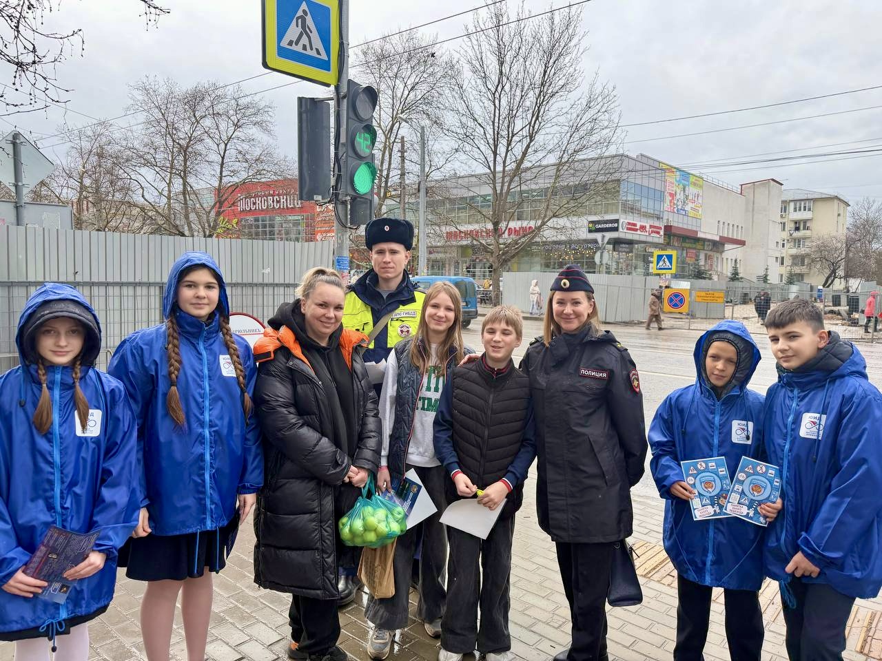 На оживлённом пешеходном переходе Севастополя организаторы провели масштабный профилактический рейд «Осторожно, пешеход!» и создали настоящий островок безопасности, где суета и спешка уступала место бдительности и организованности.