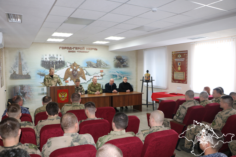 В отряде мобильном особого назначения «Грифон» под руководством заместителя начальника крымского управления Росгвардии генерал-майора Михаила Илларионова состоялась торжественная встреча сотрудников спецподразделения, отдела вневедомственной охраны по Феодосии и представителей благотворительного фонда «Салгир».