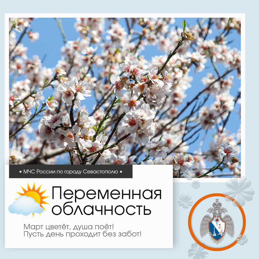 По данным гидрометцентра, 13 марта в Севастополе будет переменная облачность. Осадков не ожидается. Ветер западный 5-10 м/с. Температура воздуха 10-15°С.МЧС России рекомендует чаще звонить родным, которые живут далеко, – интересоваться их самочувствием, безопасностью и просто желать хорошего дня!