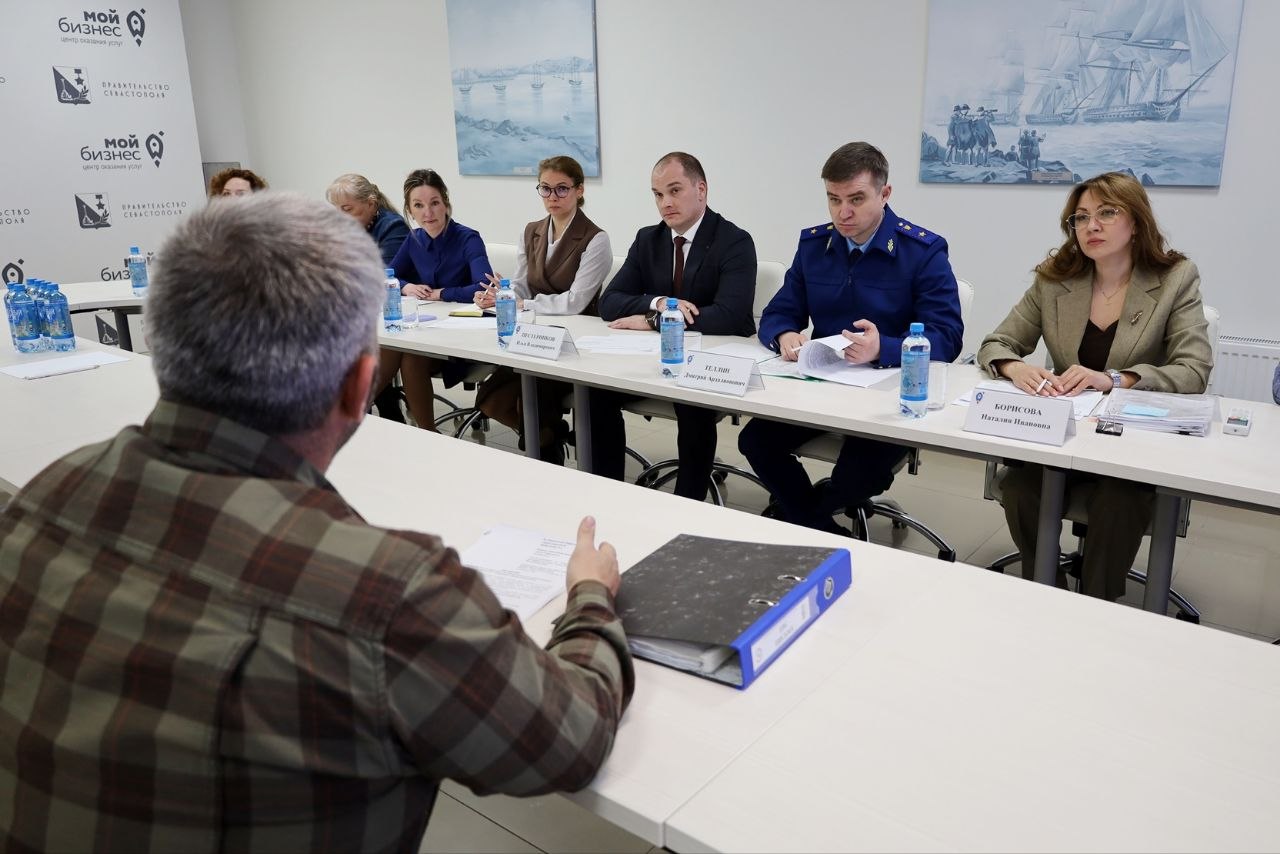 Встреча состоялась в Центре «Мой бизнес» при участии Уполномоченного по защите прав предпринимателей в городе Севастополе Ильи Пестерникова и руководителей органов исполнительной власти.