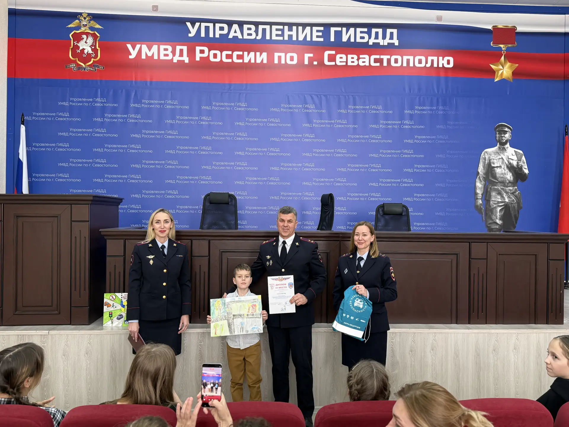 Начальник Управления Госавтоинспекции УМВД России по г.Севастополю Юрий Бондарчук наградил победителей конкурса рисунков «Служба в Госавтоинспекции глазами детей»