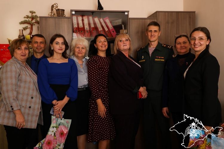 Фото: Еременко Сергей Военнослужащий Главного управления Росгвардии по Республике Крым и городу Севастополю поздравил с профессиональным праздником учителей подшефных профильных классов школы №30 им. А.А. Аматуни в Симферополе.Офицер от лица...