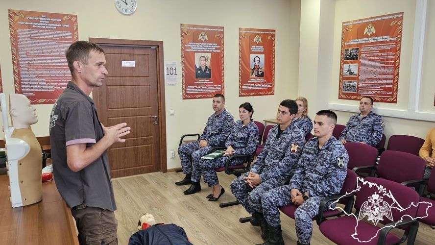 Фото: Денис Михайленко Врач из Центра общественного здоровья и медицинской профилактики провел для личного состава Управления координации деятельности подразделений Росгвардии и сотрудников спецподразделения СОБР «Сокол» занятия по оказанию первой...
