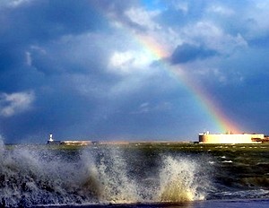 В Севастополе ураган! Ветер ломал ветки, выворачивал с корнем деревья, разбивал штормом причалы и кафешки на набережных. Я с утра схватил фотоаппараты и помчался на Примбуль. Волны взлетали иногда выше крыш домов, с грохотом накрывая всё вокруг брызгами и пеной.