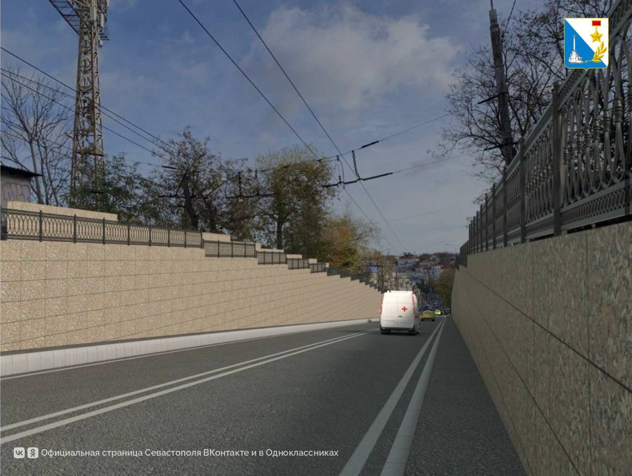 Специалисты одобрили вариант с чёрным кованым ограждением, серой вибропрессованной плиткой с гранитной крошкой и серой тактильной плиткой, сообщили в Правительстве Севастополя.