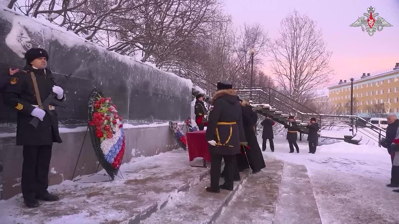Заместитель главнокомандующего ВМФ адмирал Владимир Воробьёв прикрепил к знамени соединения орден Нахимова и орденскую ленту. После церемонии участники возложили венки и цветы к мемориалу памяти атомной подводной лодки «Комсомолец».