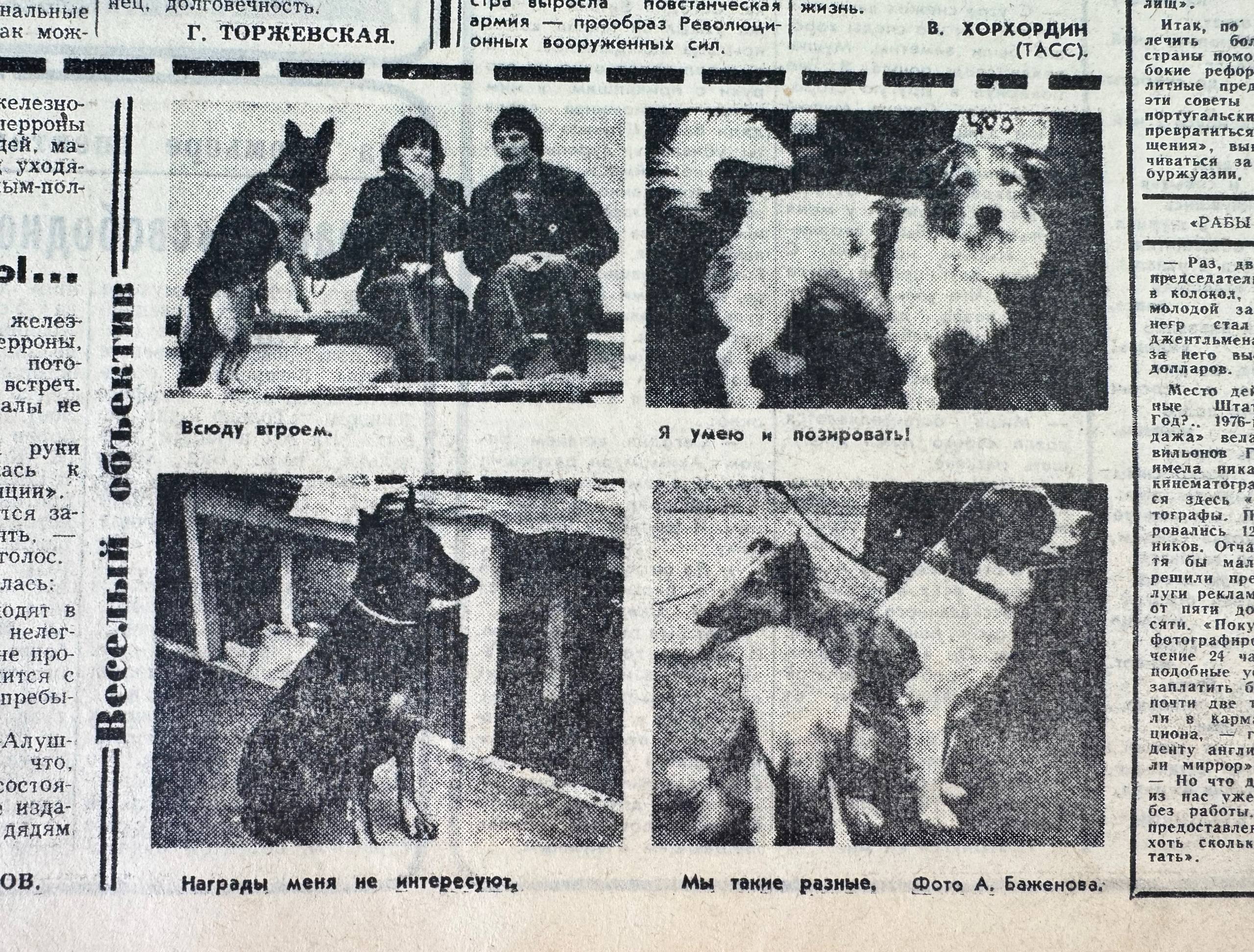 Вырезка из газеты «Слава Севастополя» с фотографиями домашних животных, декабрь 1976 года.