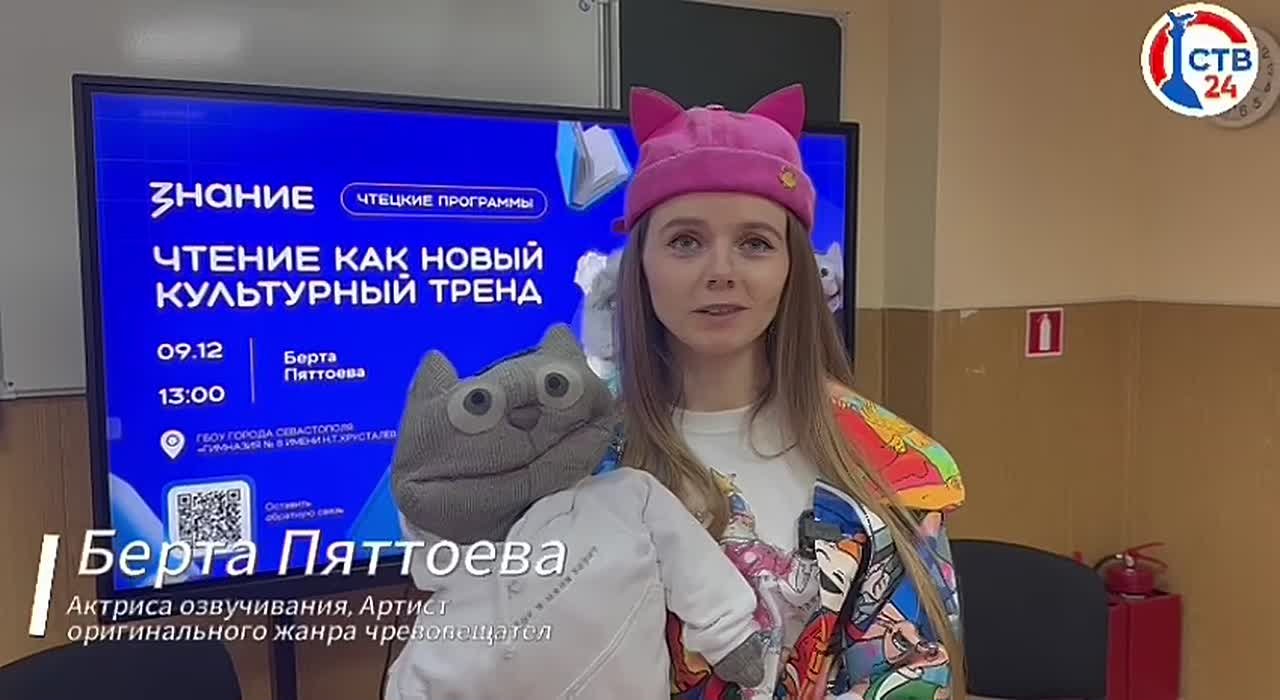 Актриса театра и кино, представитель жанра чревовещания Берта Пяттоева провела открытую встречу для учеников гимназии № 8 имени Н. Т. Хрусталева. Темой разговора стало «Чтение как новый культурный тренд».