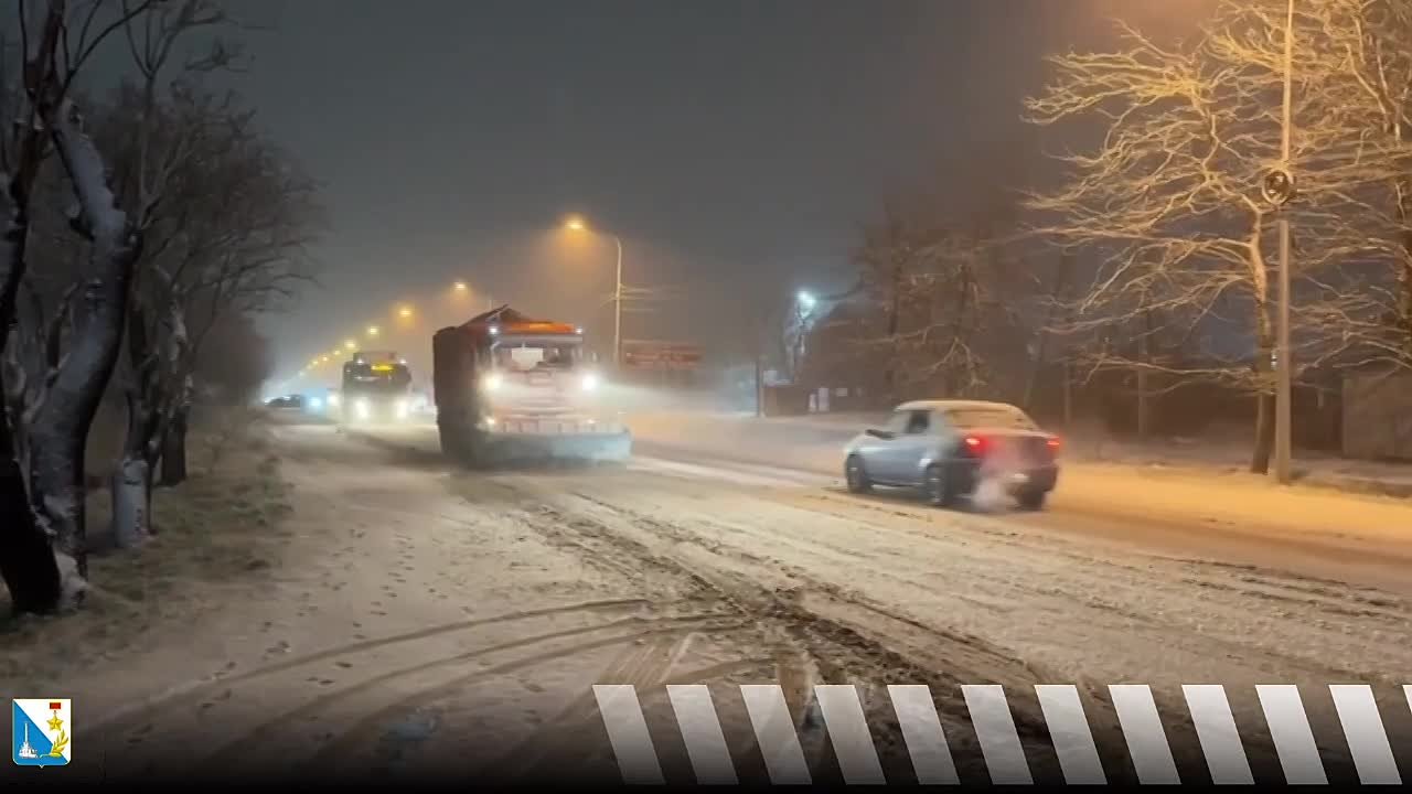 Комбинированные машины Севавтодора прямо сейчас очищают межгородские дороги и пригород, где уже выпал снег.