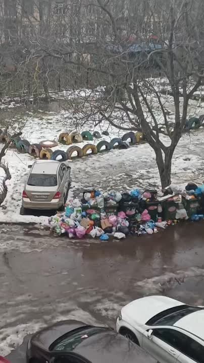 Хрусталева 79, восьмые сутки не вывозят мусор. Свалка по центру двора, прямо под окнами.