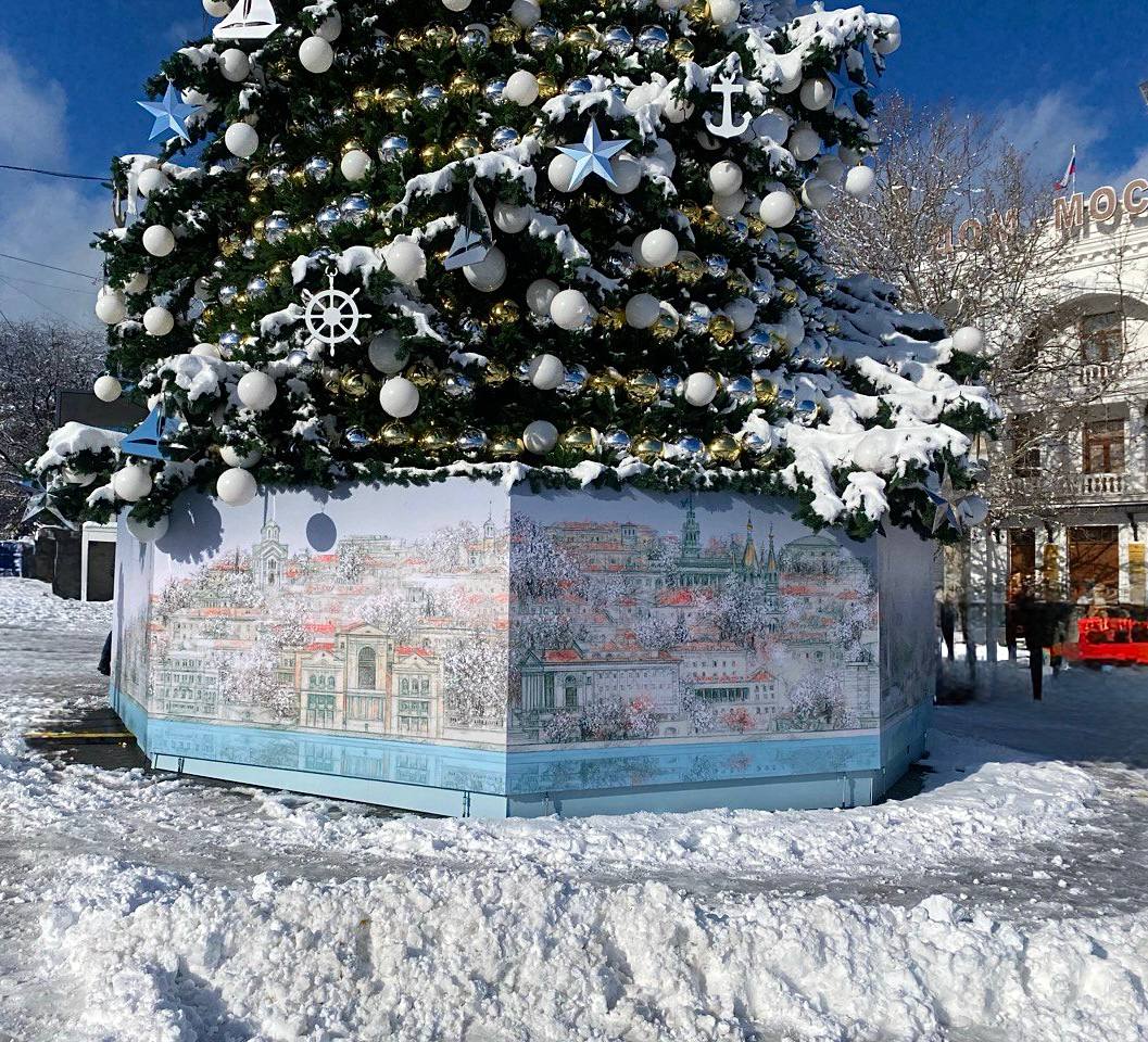 Присмотритесь к украшению главной ёлки Севастополя. Это не просто декор, а целое панорамное панно, созданное по эскизу академика РАХ Николая Дудченко.