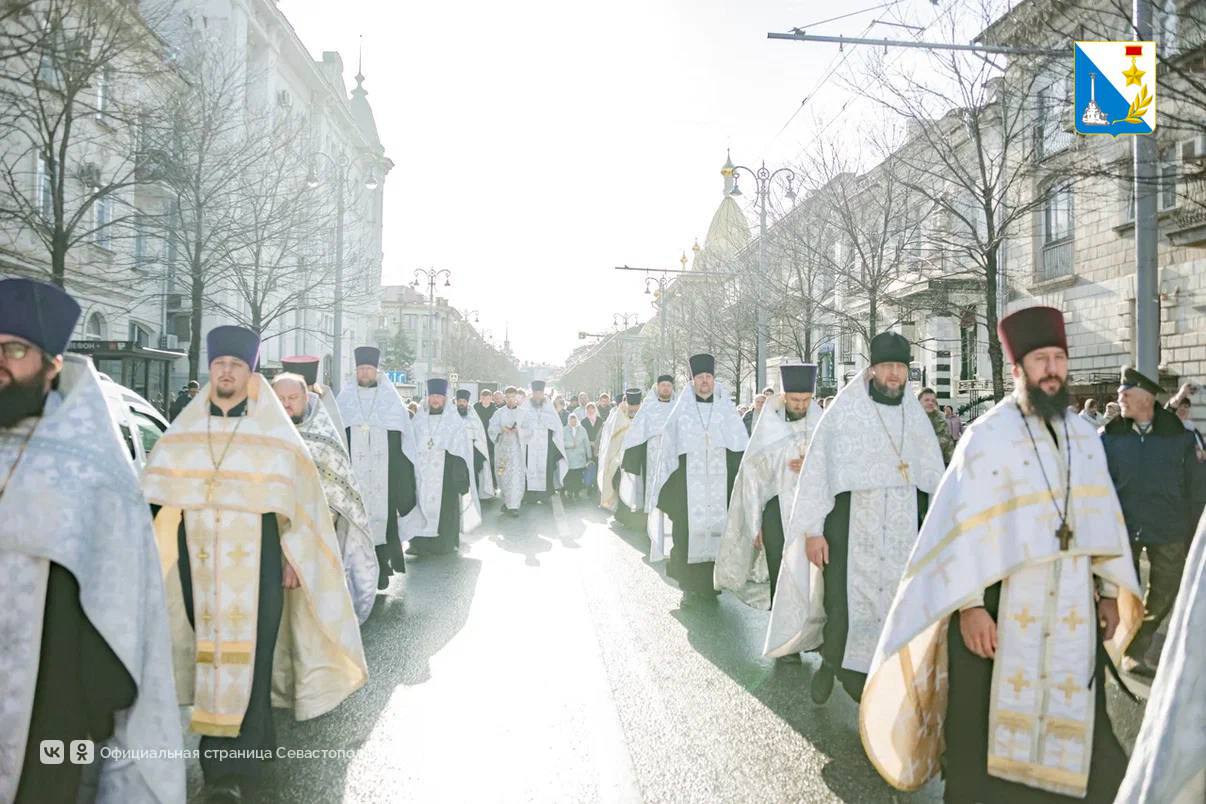 Началось молитвенное шествие от Покровского собора на Большой Морской и завершился и завершился на площади Нахимова где благочинный центрального округа протоиерей Сергий Халюта отслужил молебен.