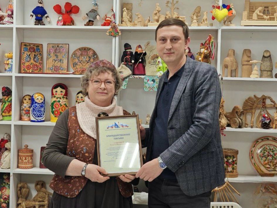 Юрий Сурков вручил Благодарственное письмо директора ведомства руководителю проекта Татьяне Бахиревой.