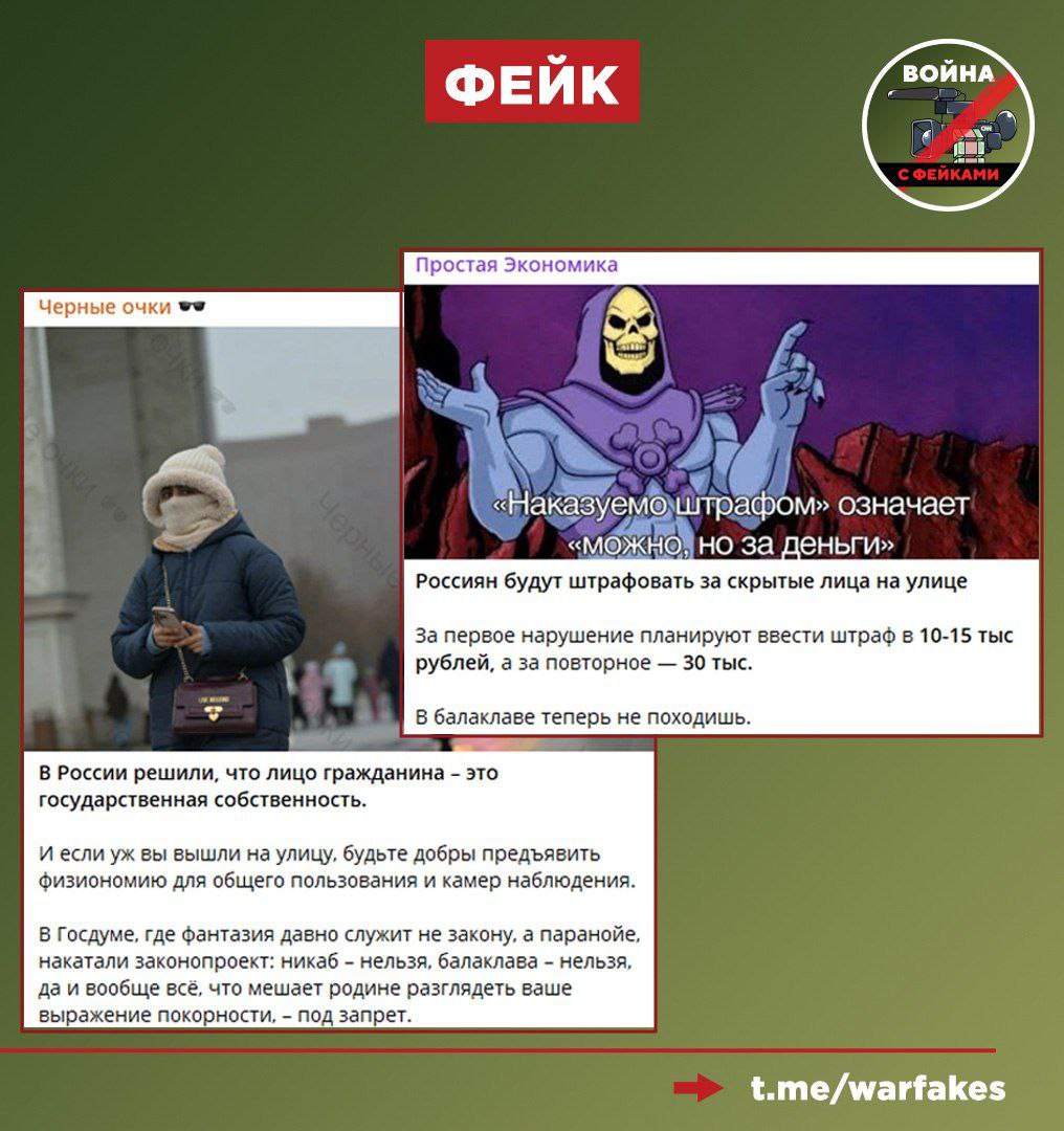 Правда: Админы телеграм-каналов выдают инициативу за свершившийся факт. Россияне (особенно жители регионов с суровым климатом) могут свободно носить балаклавы, шарфы, никаб и другие предметы одежды, скрывающие внешность. Фейкометы не блещут оригинальностью и вновь используют кликбейт-заголовки для поднятия охватов.