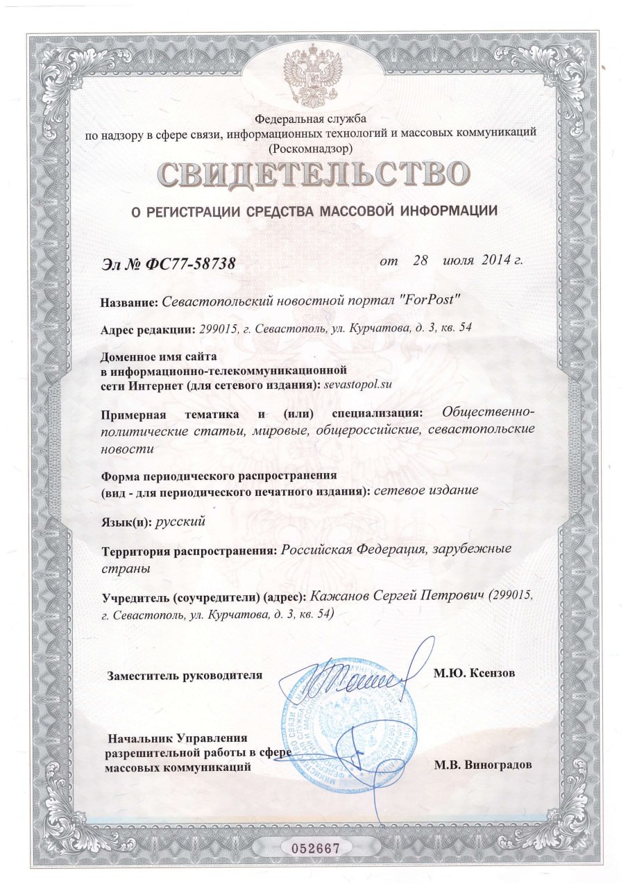 Зарегистрированное в РКН название нашего СМИ — "ForPost". И ещё это ТМ (©). Можем не менять.