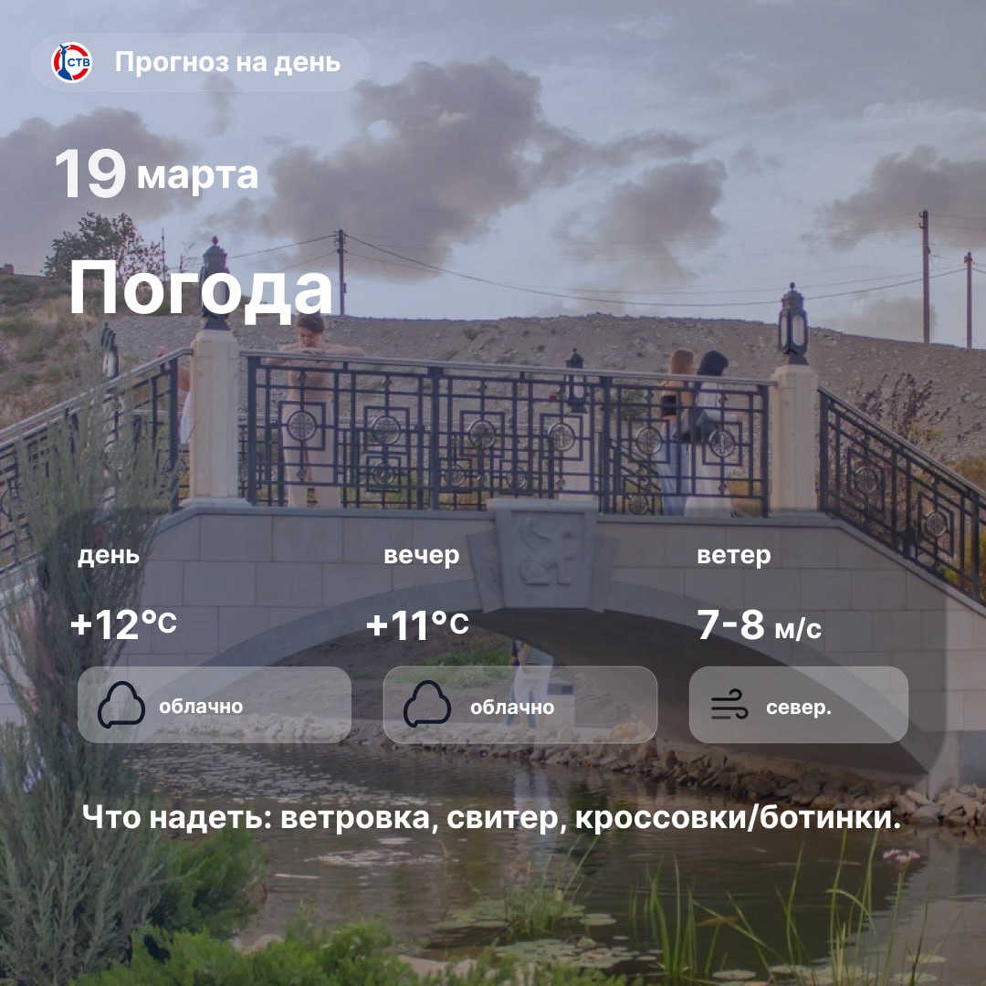 19 марта на Крымском полуострове опасные метеорологические явления не ожидаются. прохладнее.В Симферополе переменная облачность. Без осадков. Ветер северо-восточный 7-12 м/с, днем местами 15-20 м/с. Температура воздуха днем...