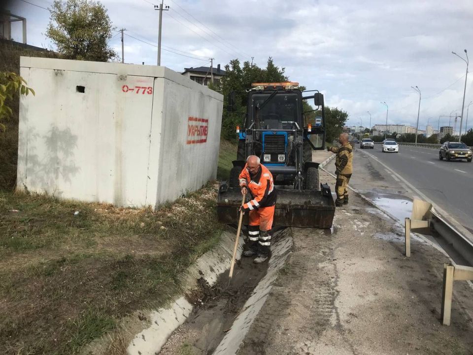 Организован объезд районов города, ливневки и лотки с водоприемными колодцами очищают от листвы и грунта. В местах, где было большое скопление воды на проезжей части, она уже уходит в ливневки....