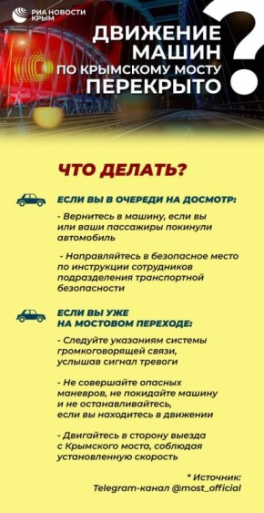 Что делать, если вы оказались на мосту во время приостановки движения – в инфографике.#*0 Подписаться на РИА Новости Крым в Telegram / MAX / VK Морской пассажирский транспорт приостановил движение в Севастополе.Об этом сообщает дептранс города. "В...