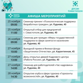Расписание смотрите в карточке.Вопросы - по телефону +7(8692)66-22-92.Подписаться на СОЦЗАЩИТУ СЕВАСТОПОЛЯ в МАХ#КадровыйцентрРаботаРоссии #СоцзащитаСевастополя