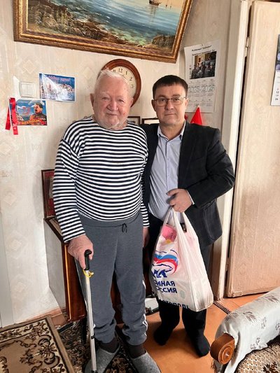 Депутат вручил ветерану подарок и пожелал ему крепкого здоровья, долгих лет жизни и мирного неба над головой.
