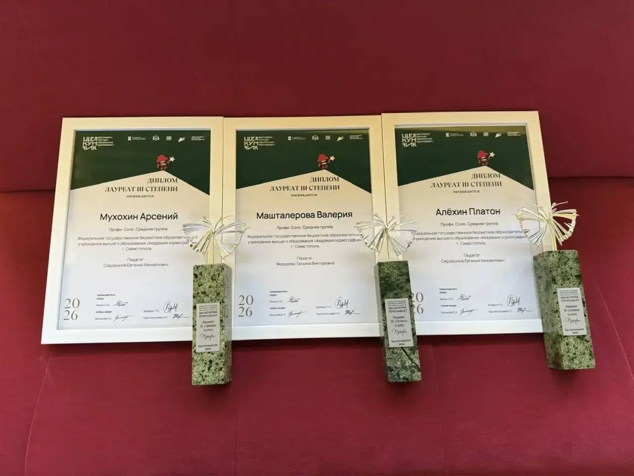 По итогам конкурса Валерия Машталерова, Платон Алехин и Арсений Мухохин стали лауреатами III степени.