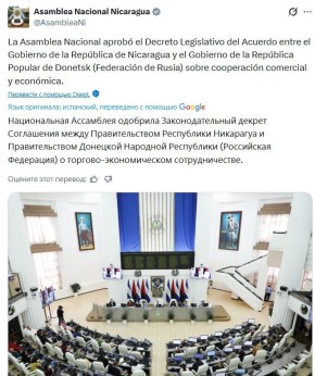 Парламент Никарагуа одобрил решение установить торговые отношения с Донецком и Севастополем.// ANNA NEWS