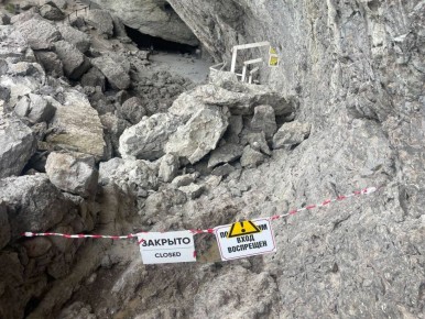 Это случилось из-за сильных ливней.Проход к гроту временно закрыт. Туристам рекомендуют не посещать этот участок маршрута до полного восстановления безопасности.ForPost
