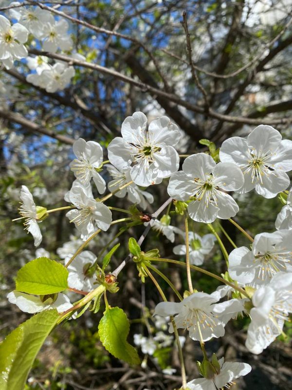 Этот цветок появляется на дереве раньше, чем листья. Он белый, пахнет весной. А летом на на его месте созреет нечто вкусненькое.