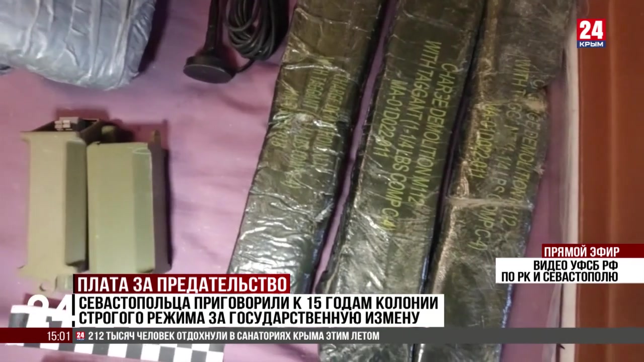 Севастопольца приговорили к 15 годам колонии строгого режима за государственную измену. Приговор вынес Южный окружной военный суд. 51-летнего мужчину задержали сотрудники ФСБ за подготовку теракта по заданию украинских спецслужб. Он должен был подорвать железнодорожный мост в городе-герое и собрать сведения об объектах Вооружённых Сил России, расположенных на полуострове.