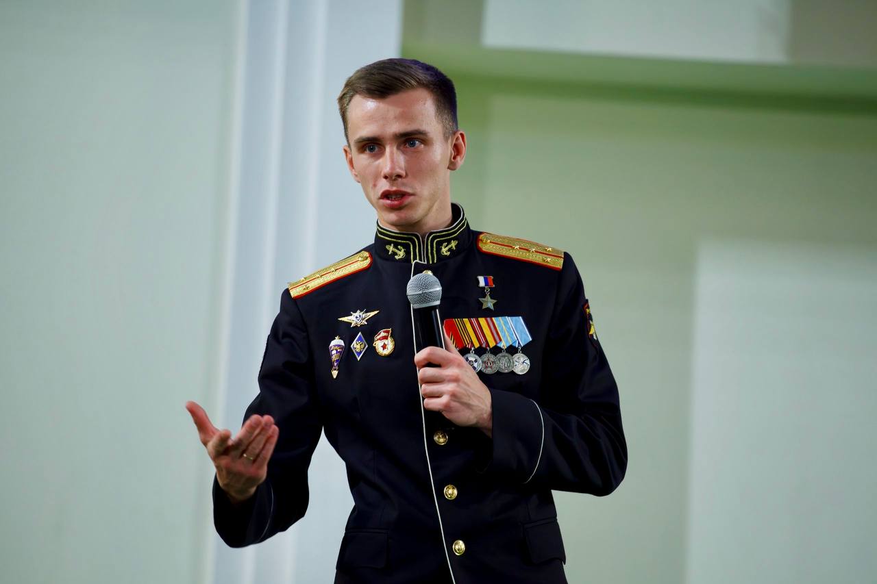 На встрече с активистами Юнармии и Движения первых он рассказал, что в Городе-Герое он проходил водолазную практику еще во время обучения, проходил службу в должности командира десантно-штурмового подразделения. Герой РФ поделился воспоминаниями о службе в зоне специальной военной операции, помощи товарищам, рассказал о людях, которые являются для него примерами, о встрече с Президентом РФ, и конечно же, о планах по развитию Юнармии.