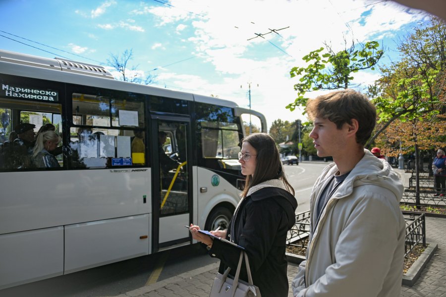 Мониторинг работы общественного транспорта провели в центральной части города — на остановке «Площадь Нахимова». Специалисты департамента транспорта и развития дорожно-транспортной инфраструктуры проверили работу маршрутов № 16, 92 и 94.