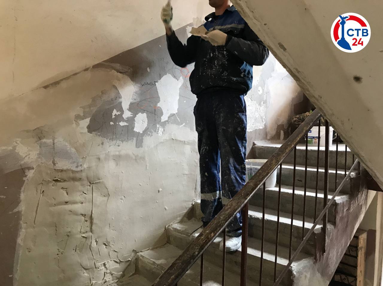 В подъезде на проспекте Генерала Острякова, 165А начали ремонт по требованию Госжилнадзора