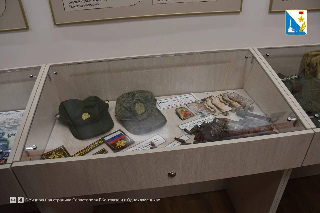Экспозиция включает личные вещи героев: подводников «Курска», участников Великой Отечественной войны, военнослужащих, погибших в зоне СВО, и самого Александра Байбутлова — сотрудника ФСБ, павшего в бою с террористами в Дагестане.