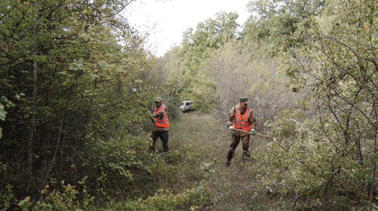 «Сложность работы заключается в том, что это в основном кустарник, тёрн очень колючий. Это может быть ежевика, это может быть боярышник, это может быть кизил. Соответственно породы твёрдые — плохо очень пилятся», — рассказал ведущий специалист по организации производства Денис Безуглый.