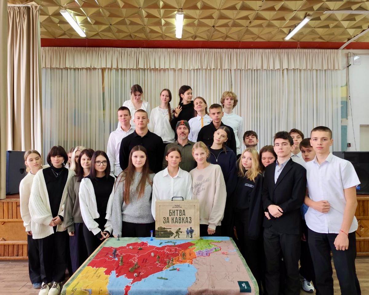В школе №61 состоялось по-настоящему необычное и захватывающее событие — историко-патриотическая настольная игра «Час Мужества. Битва за Кавказ», проведённая в рамках Всероссийского проекта по приглашению Навигатора Детства Ольги Новичковой.