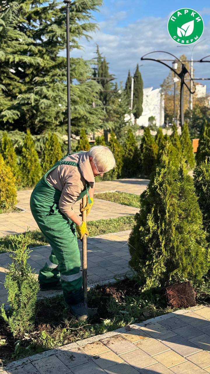 Площадь Восставших украсили молодыми туями.