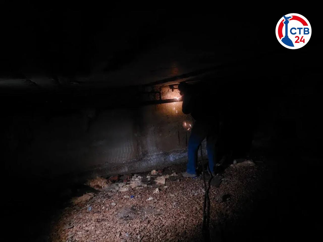 Специалистыуправляющей компании «Центр» работают в подвале, где прорвало трубы центрального отопления. Аварийные участки демонтируют.