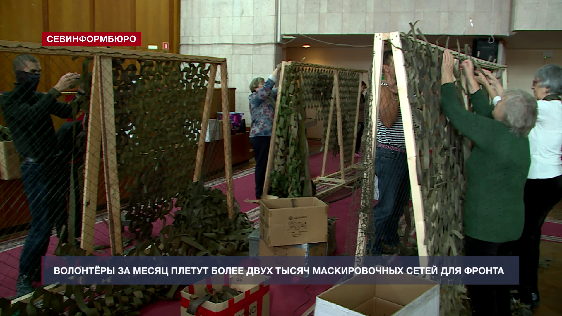 ЛАРИСА КОРНИЕНКО, организатор проекта «Маскировочные котики»: «Год мы здесь и за год, когда мы пришли сюда, у нас было около 1000 квадратов сетей в месяц. Сейчас - почти уже три. В прошлом месяце было 2800 квадратов. Это было 170 сетей».