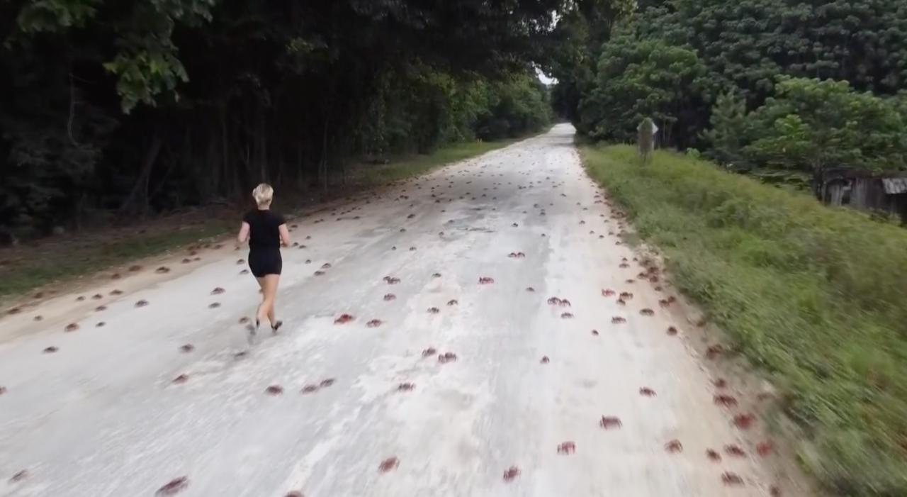 Ярко-красные ракообразные традиционно мигрируют из джунглей на побережье Индийского океана для размножения. Происходит это с приходом сезона дождей.