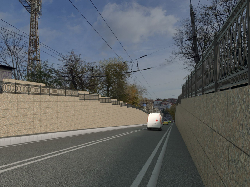 В Севастополе ведется капитальный ремонт подпорных стен на улице Адмирала Октябрьского. Ранее проект отделки подпорных стен был рассмотрен членами архитектурно-художественного совета. Тогда специалисты согласовали цветовые решения отделки, был проведен выезд с примеркой образцов материала.