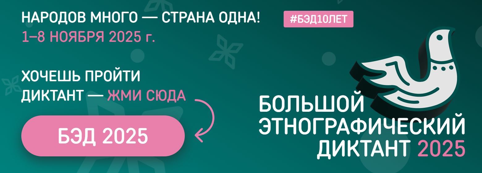 С 1 по 8 ноября 2025 года Федеральное агентство по делам национальностей совместно с партнёрами проводит X Всероссийскую просветительскую акцию «Большой этнографический диктант». Юбилейная, десятая по счёту акция направлена на укрепление общероссийской гражданской идентичности, популяризацию традиционных российских духовно-нравственных ценностей и борьбу с фальсификацией истории.
