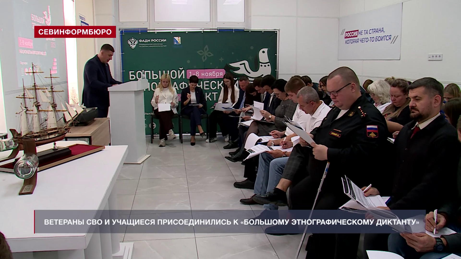 На этот раз в «Большом этнографическом диктанте» появилась видеоопция. Часть вопросов с экрана присутствующим озвучивали участники специальной военной операции. В качестве ведущего выступил Герой России, депутат Законодательного собрания Севастополя Роман Кулаков. В числе присоединившихся к акции, прошедшей в Штабе общественной поддержки на улице Большой Морской, – также севастопольцы-ветераны СВО.
